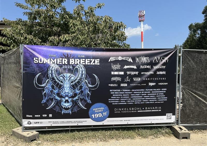 Kaum ist das Summer Breeze 2025 Geschichte, geht es mit der ersten Bandwelle für 2026 weiter. Was 1997 im kleinen Rahmen entstand, hat sich mittlerweile zu einem der größten Metal-Festivals überhaupt entwickelt und lässt jedes Jahr tausende Metalheads aus aller Welt in den Süden Deutschlands nach Dinkelsbühl pilgern. Das Summer Breeze findet vom 12. bis 15. August 2026 statt.